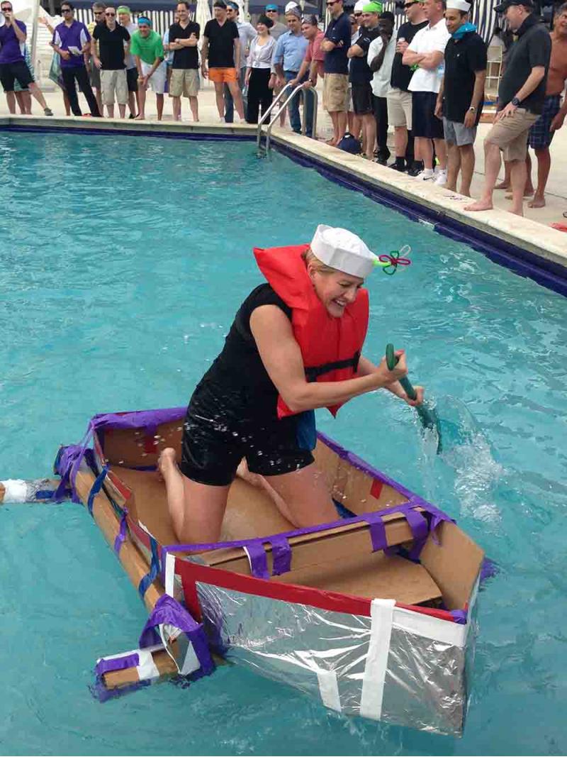 Executives utilize team work, communication and creativity to build a sea worthy vessel from flat pack.