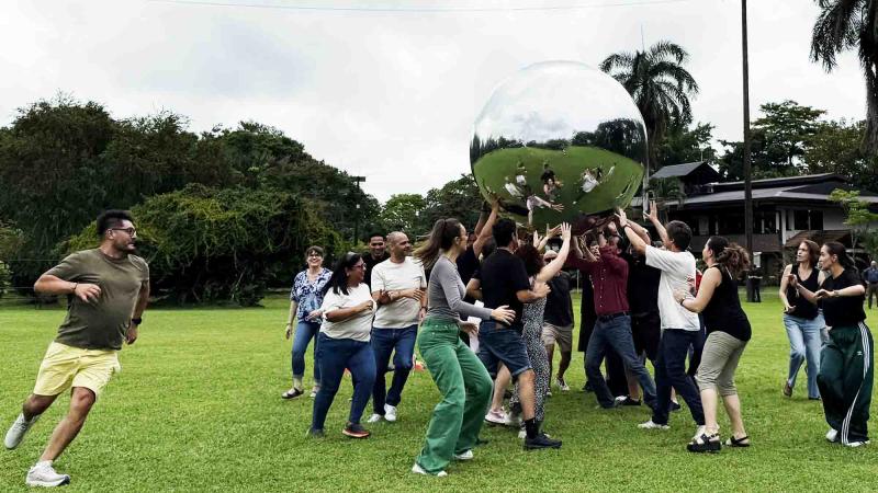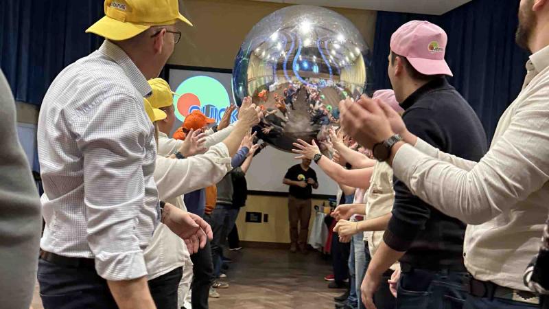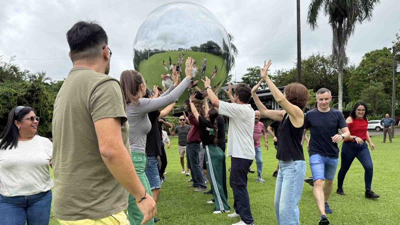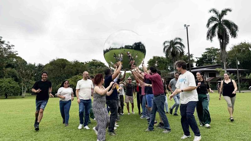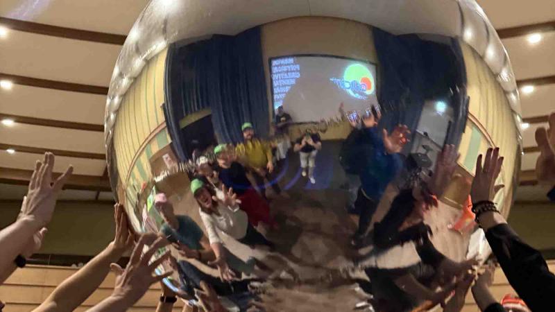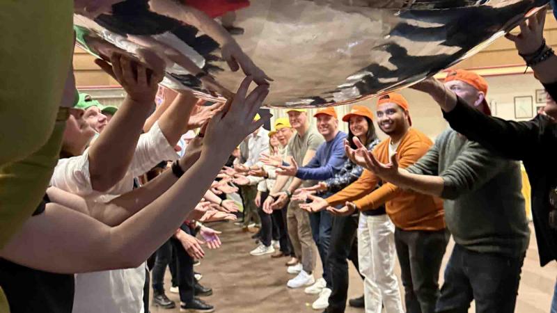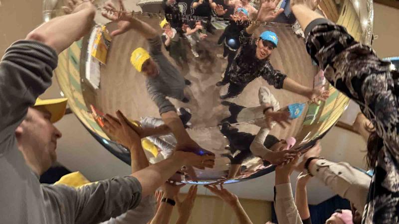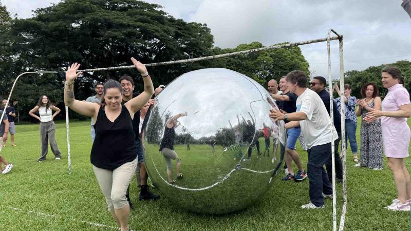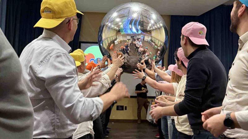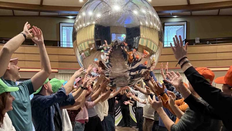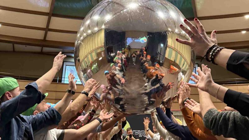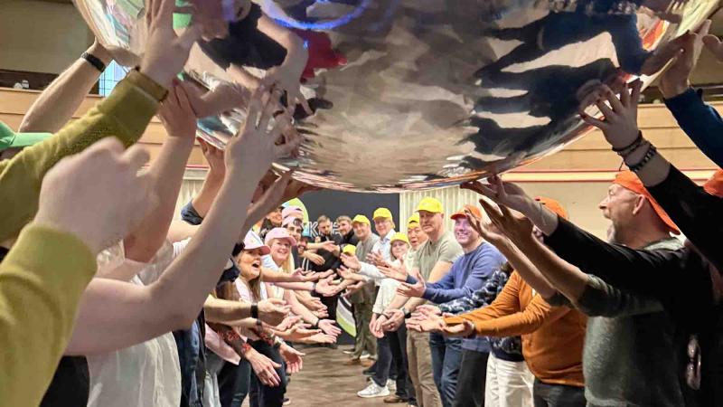 Uplift is a high-energy, laughter-filled team-building icebreaker where coordination, communication, and trust take center stage. In this dynamic activity, teams work together to keep a giant inflatable mirror ball off the ground while navigating a set course without moving their feet whenever they make contact with the ball.